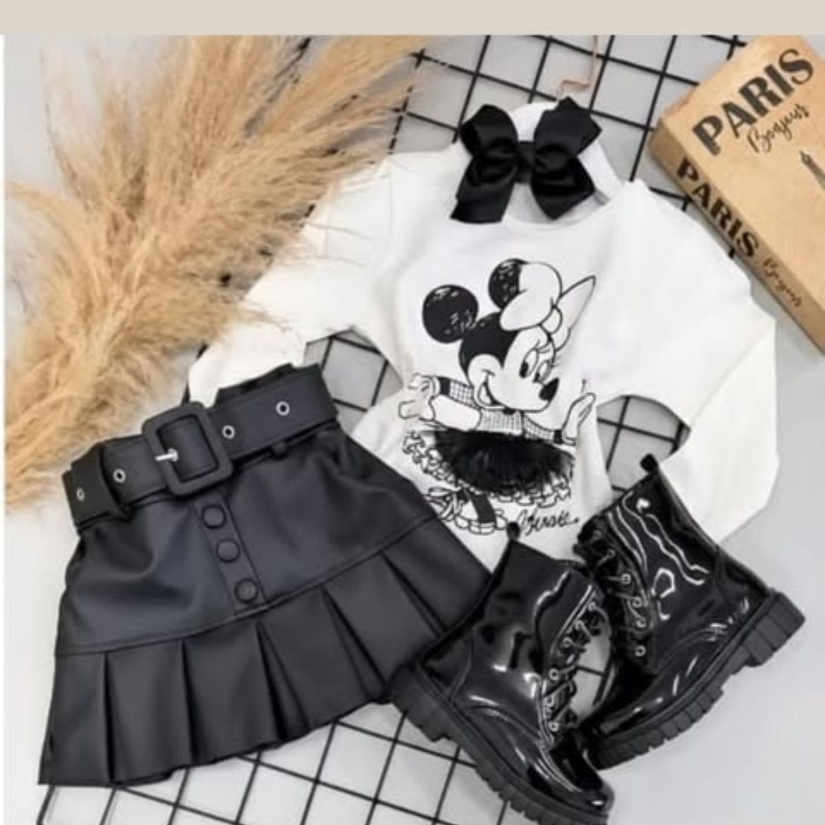 Incluye un buso con estampado de Minnie y una falda de cuero sintético con cinturón.🌟 Pocas unidades disponibles, ¡no te quedes sin el tuyo!