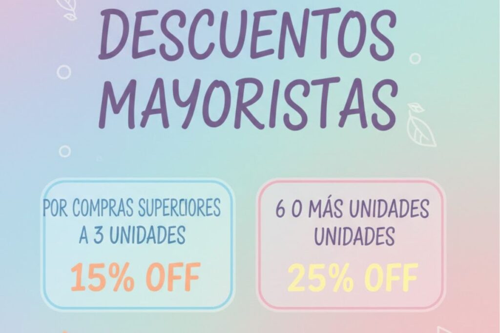 Para obtener precios al por mayor puedes elegir diferentes referencias, colores o tallas. Al agregar más de 3 artículos al carrito verás el descuento al finalizar la compra. A mayor cantidad de artículos, mayor descuento.