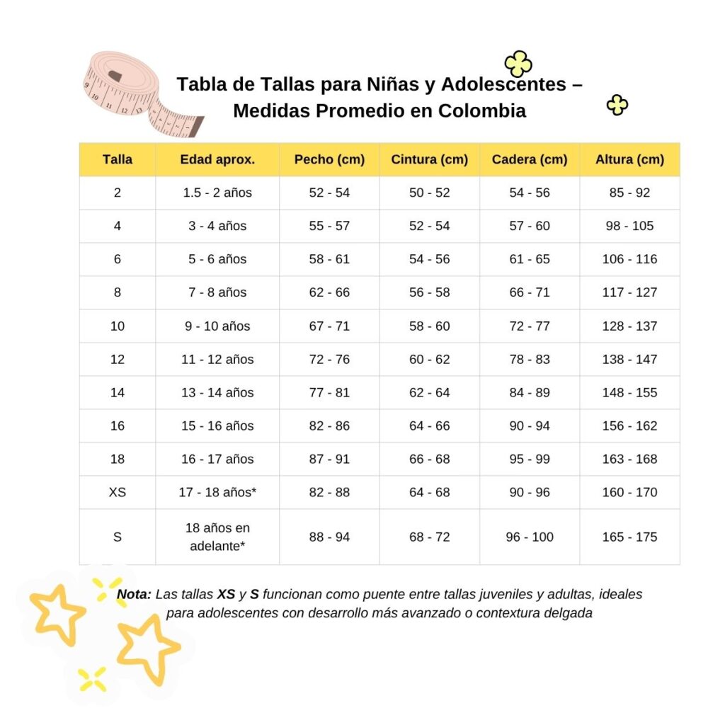 Luego, compara las medidas con nuestra guía de tallas y elige la ideal para que tu peque esté cómoda y con el outfit perfecto 💕