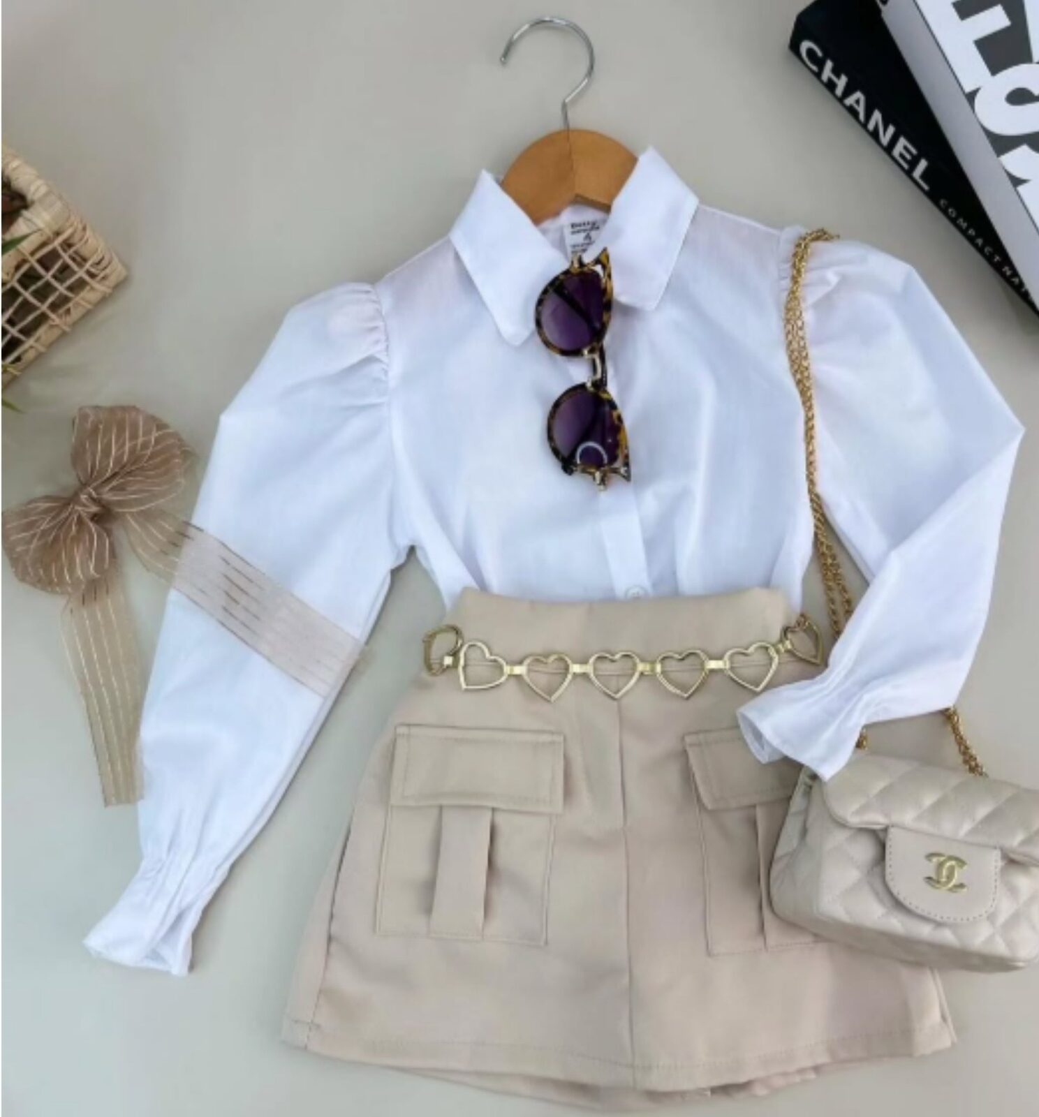 👕Blusa manga larga seda mango y falda dril strees con cadena , confeccionado en tela ligera, suave y resistente, ideal para jugar o salir con estilo.